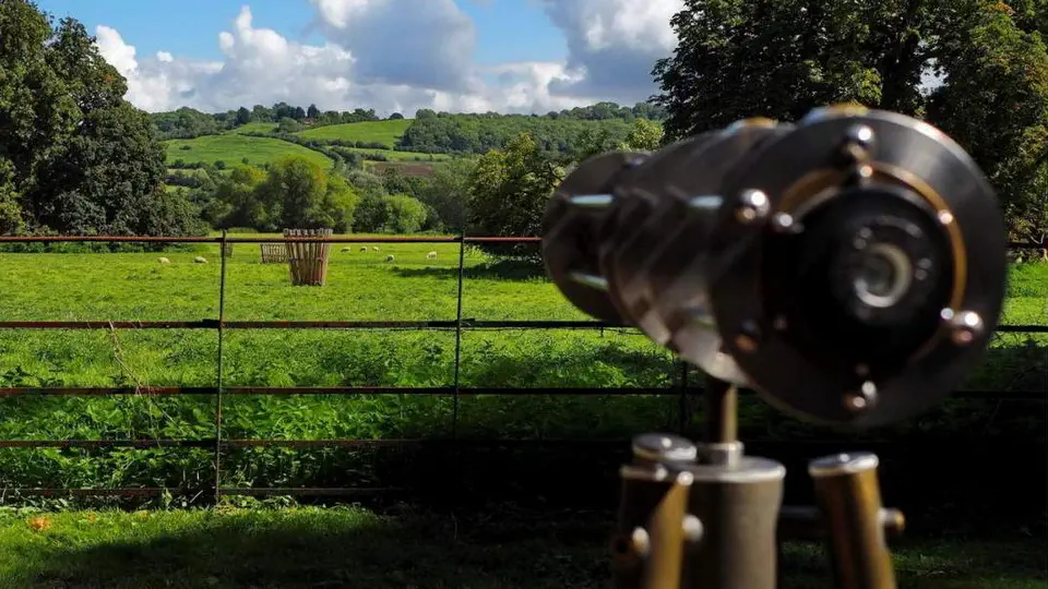 Lacock Abbey is not only the beautiful Gothic building described above, but also the gardens and parkland that surround it. Vast green areas are carefully maintained and are an attraction in their own right. While walking along the paths and woodland tracks, we frequently came across thoughtfully arranged installations related to photography. Along the paths, metal viewing tubes have been placed, allowing visitors to see the surroundings exactly as they would appear when viewed through the aperture of an old wooden camera.